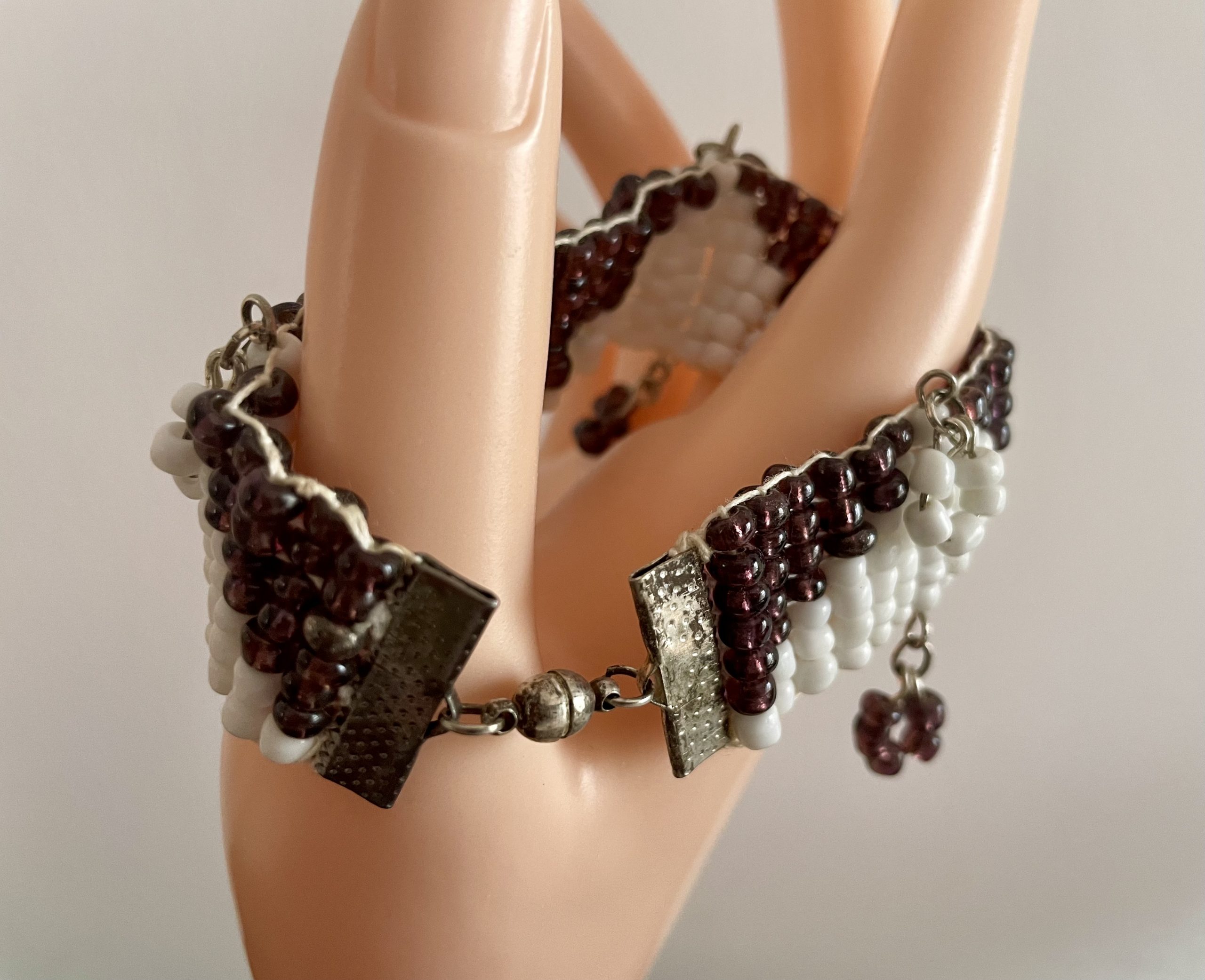 Dieses elegante „Tag und Nacht“ Armband ist ein echter Hingucker, im Dreieckmuster erarbeitet, mit kleinen seitlichen Anhängern.