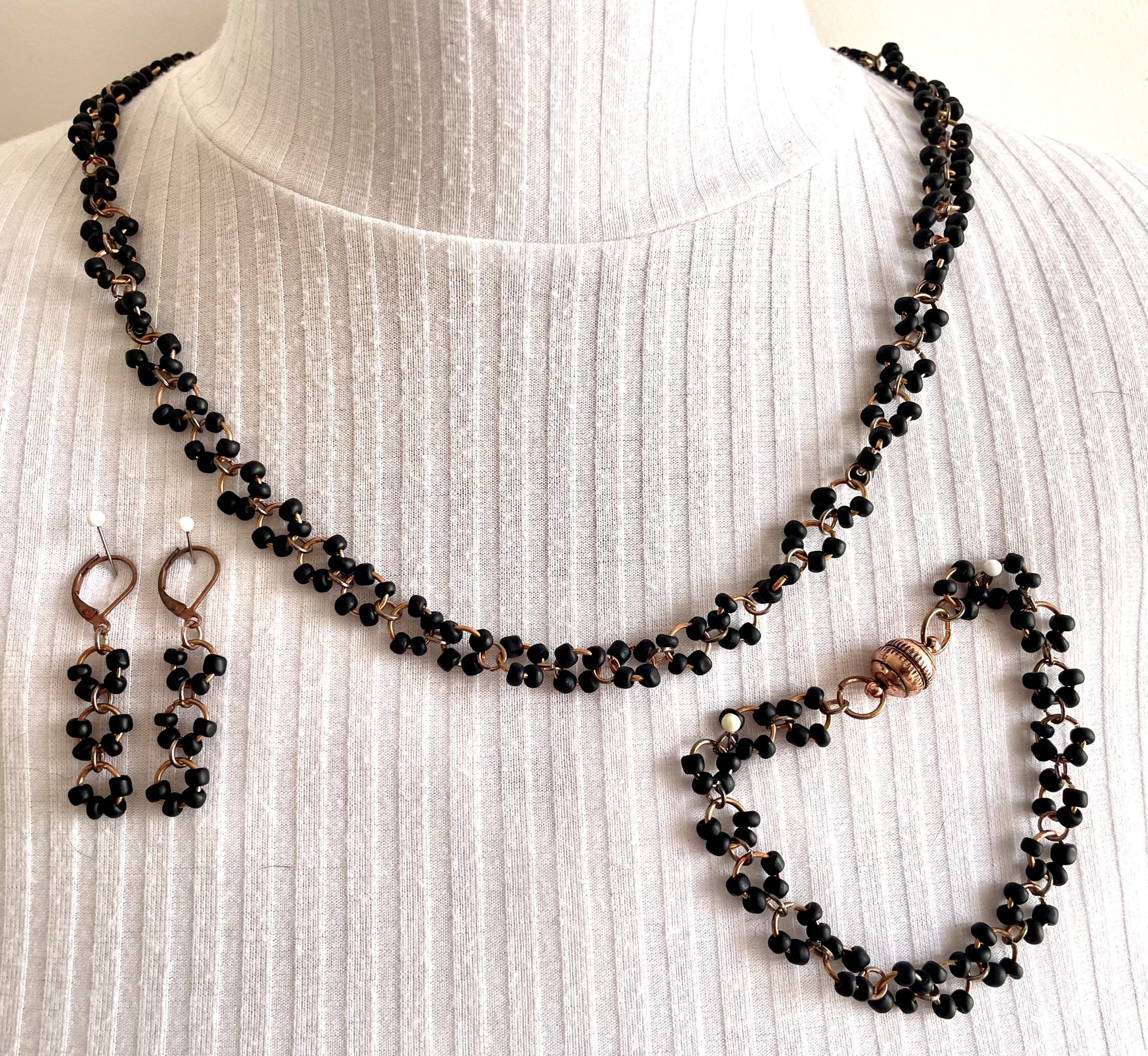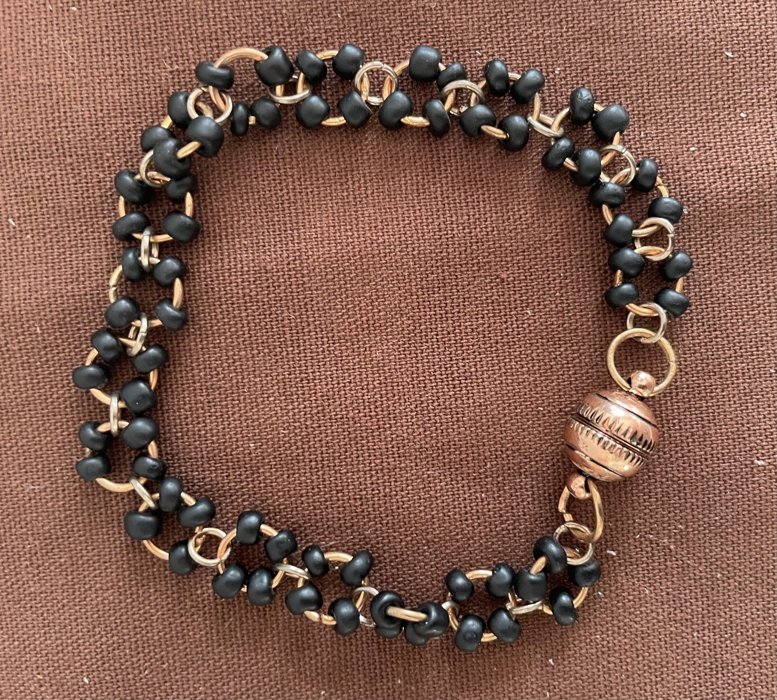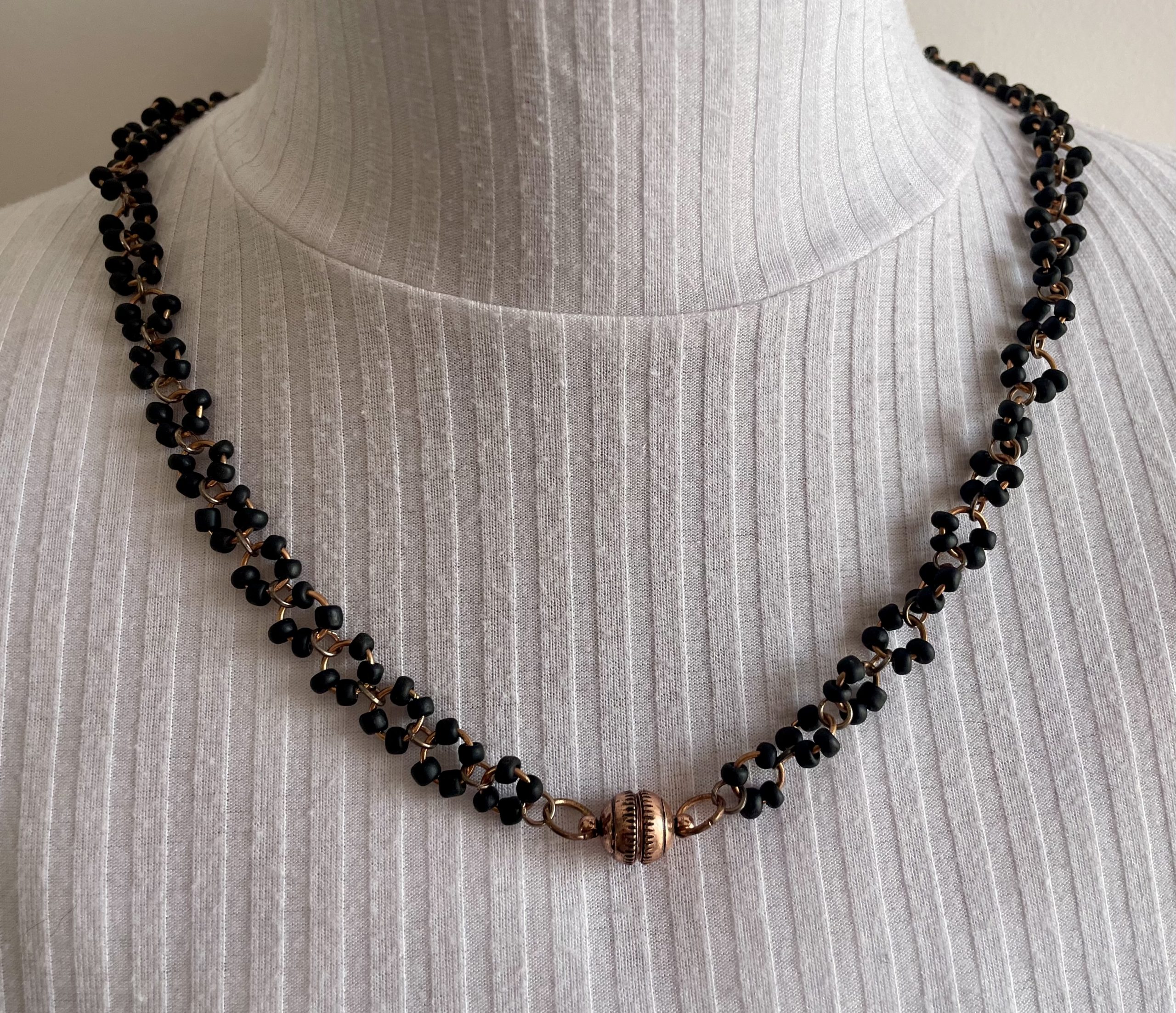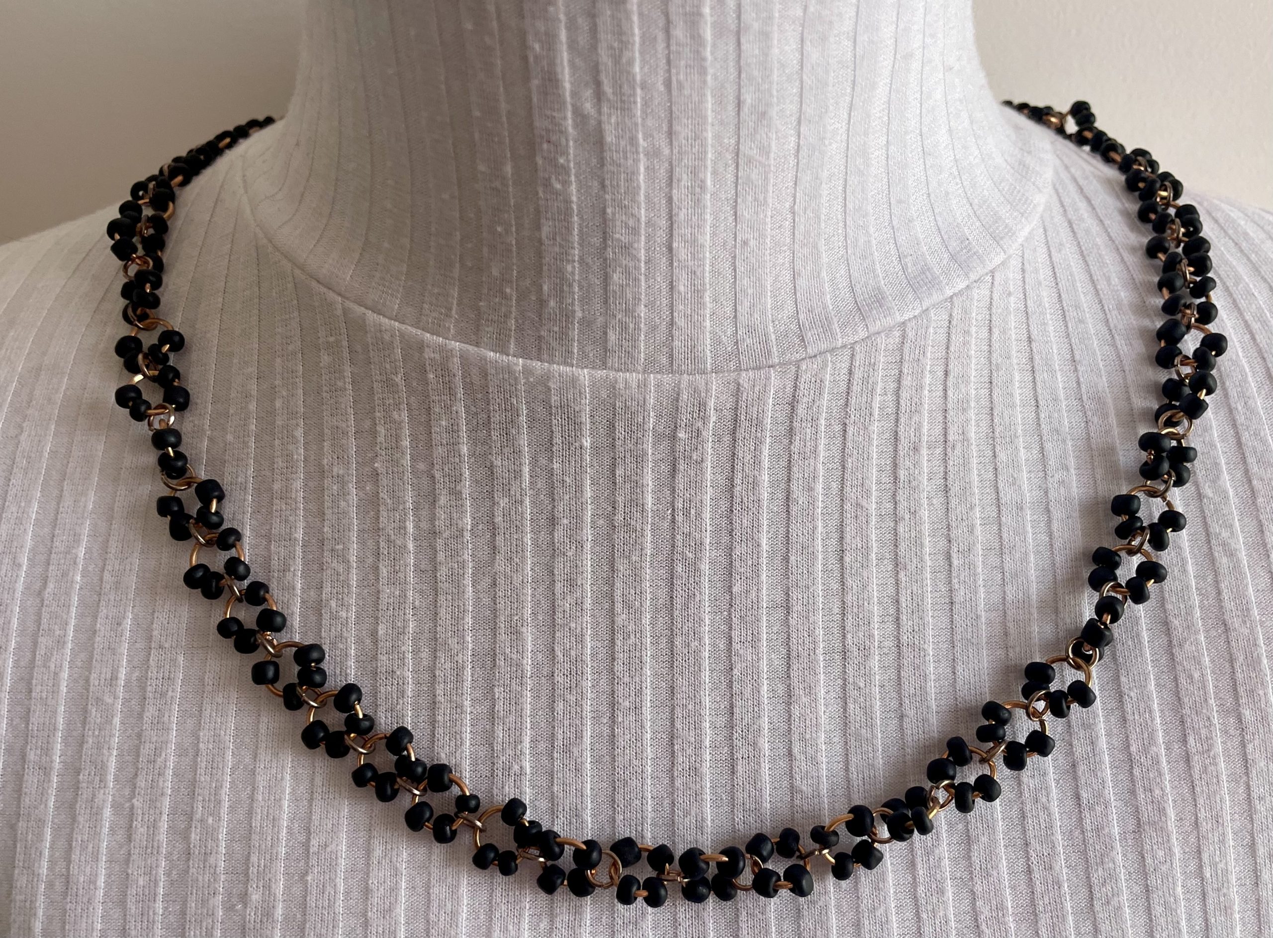 Rosègold Gliederkette besetzt mit schwarze Glasperlen