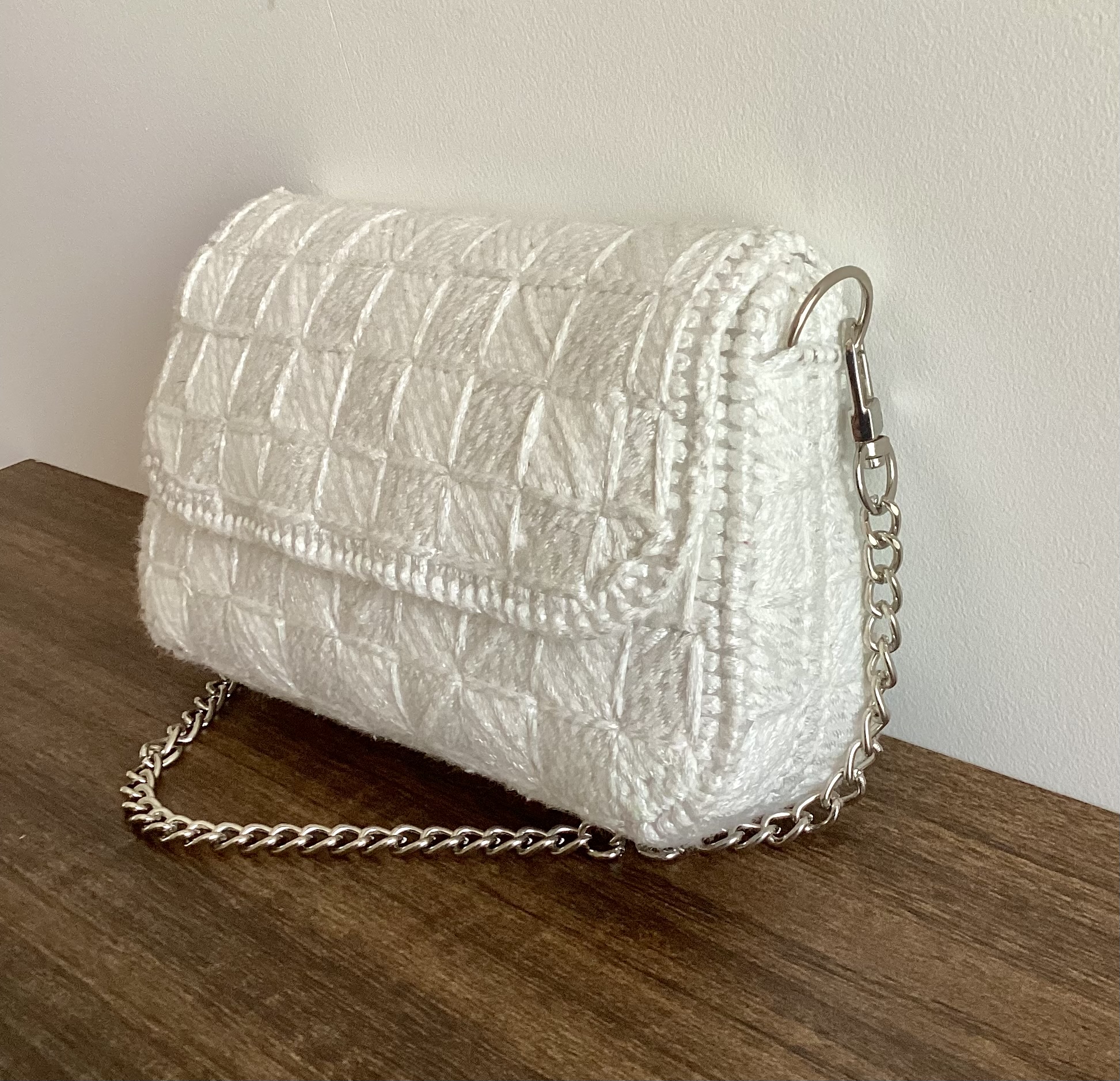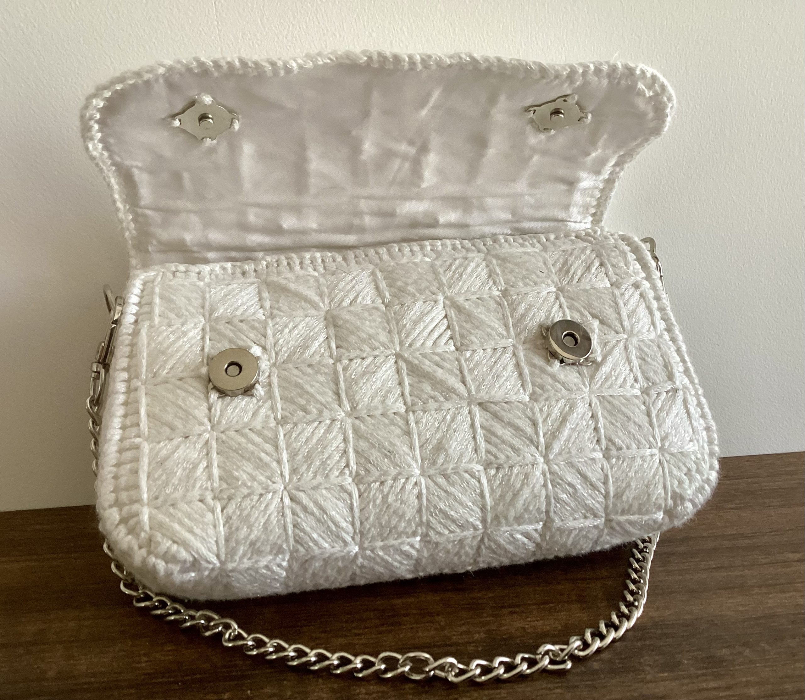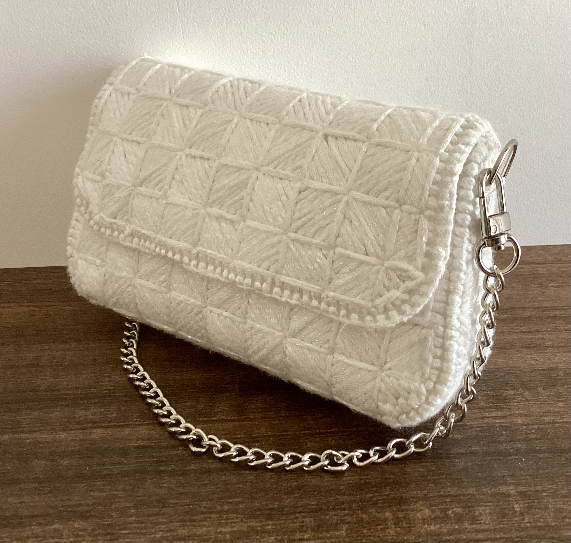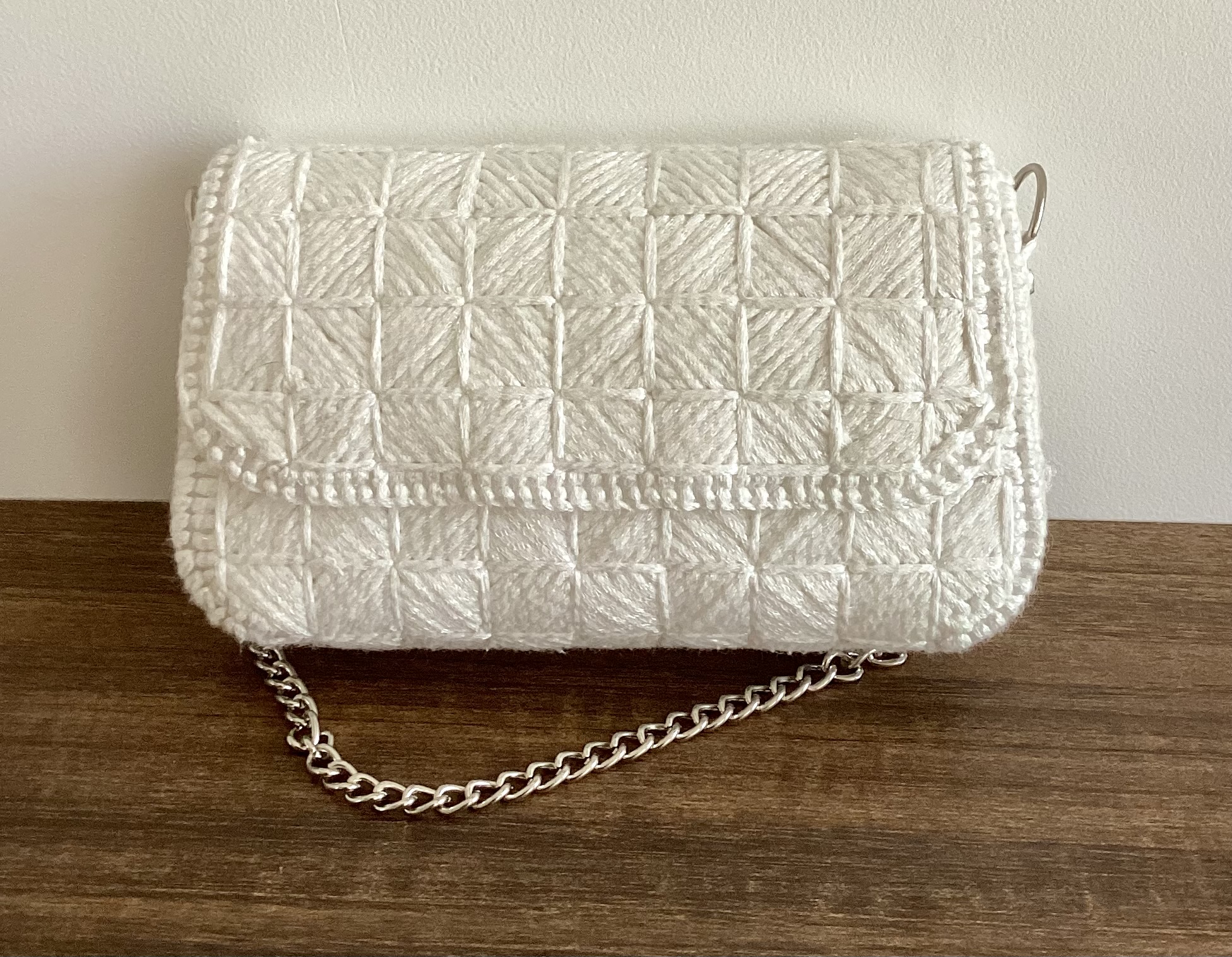 Diese Umhängetasche ist solide und robust, verfügt über eine abnehmbare ca 40 cm lange Kette zum umhängen, in Handarbeit gestickt.